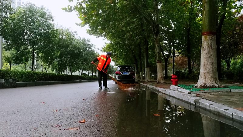 連續(xù)幾日的陰雨結束后,10月7日一大早,環(huán)衛(wèi)工人們就開始清理中心城區(qū)道路上的積水和落葉,為我市“創(chuàng)衛(wèi)”工作貢獻一份力量。