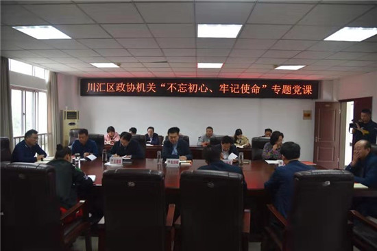 川匯區(qū)政協(xié)黨組副書記、副主席梁顯棟,副主席王建國、黃婉真、馬淮海及機關(guān)黨員干部聆聽黨課。