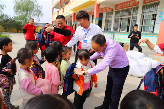 10月24日,周大福河南區(qū)域負(fù)責(zé)人岳磊一行15人,帶著書包、文具、足球、藍(lán)球等學(xué)習(xí)用品,來(lái)到鄲城縣丁村鄉(xiāng)徐莊小學(xué),為200余名學(xué)生送來(lái)了愛心大禮包。并為兩戶貧困戶送去了米面油等慰問品。