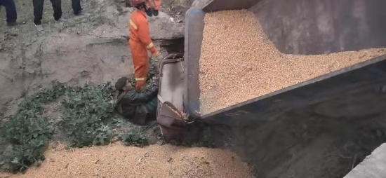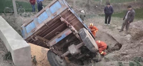 接警后,鄲城消防大隊(duì)立即出動3輛消防車15名指戰(zhàn)員前往處置。經(jīng)偵查發(fā)現(xiàn),側(cè)翻車輛是一輛農(nóng)用三輪車,車上拉有約2噸散裝玉米?,F(xiàn)場玉米灑落一地,駕駛員約六十歲,左腿被農(nóng)用三輪車前輪壓住,無法脫身,加之即將天黑,當(dāng)時(shí)天氣較冷,如不及時(shí)處置,后果不堪設(shè)想。