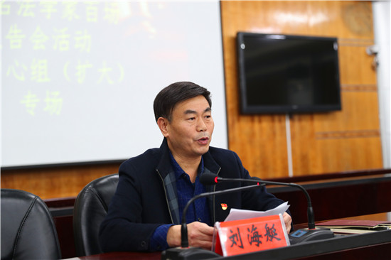 劉海艇在總結講話中說,本次報告會是太康縣學習貫徹黨中央關于全面依法治國決策部署的重要活動,各鄉(xiāng)鎮(zhèn)、各部門要認真領會好、學習貫徹好這次報告會精神,堅持以習近平新時代中國特色社會主義思想為指導,牢固樹立法治思維,增強法治意識,不斷提升依法行政的能力,努力營造辦事依法、遇事找法、解決問題用法、化解矛盾靠法的法治環(huán)境,為建設平安太康、法治太康、和諧太康做出新的更大貢獻。