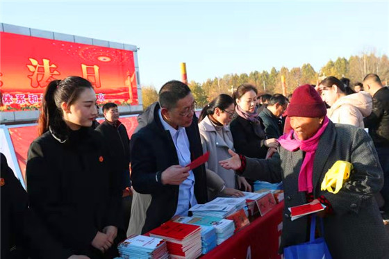 在縣法院展板前,法院院長(zhǎng)張建援帶領(lǐng)工作人員,邊給群眾發(fā)放法制宣傳資料,邊認(rèn)真講解法律常識(shí),贏得贊譽(yù)一片。在縣教體局宣傳展臺(tái)前,記者注意到,該局為讓?xiě)椃ň裆钊雽W(xué)生心中,特意舉辦憲法晨讀活動(dòng),并展示了精選的憲法晨讀內(nèi)容。同該縣教體局一樣,縣直有關(guān)單位認(rèn)真落實(shí)“誰(shuí)執(zhí)法誰(shuí)普法”普法責(zé)任制,重點(diǎn)宣傳了與本部門(mén)業(yè)務(wù)有關(guān)的法律法規(guī)知識(shí)和與群眾生產(chǎn)生活密切相關(guān)的日常法律法規(guī)常識(shí)等。