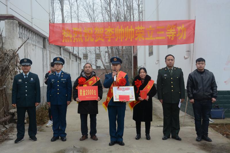 12月下旬,黃繼光生前所在部隊與沈丘縣人武部、沈丘縣退役軍人事務(wù)局共同商榷,為了使軍人的榮譽向官兵家庭拓展、向全社會輻射,在新年前開展一次功章勵我強軍志、立功喜報送到家活動,選派專人成立報喜小分隊,為立功授獎的官兵家庭送去立功喜報和慰問金。