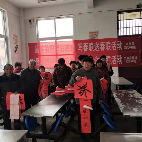 1月22日,在中原出版?zhèn)髅郊瘓F公司開展的“最美讀書聲”最美的祝?!捌哌M” 活動精神指導下,太康縣新華書店有限公司走進太康縣建南社區(qū)開展“書寫春天 溫暖社區(qū)”迎新春活動,為社區(qū)居民寫春聯(lián)、送春聯(lián)。