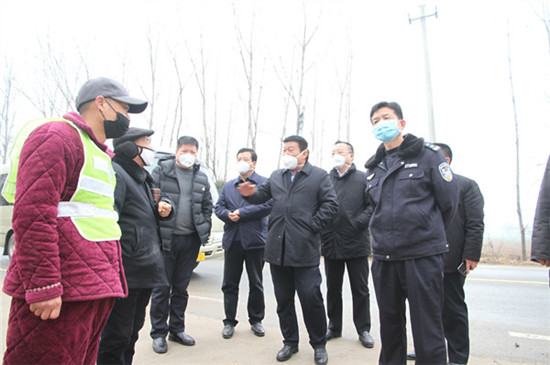 李錫勇一行先后到楊廟鄉(xiāng)、轉(zhuǎn)樓鎮(zhèn)、龍曲鎮(zhèn)、王集鄉(xiāng)、城郊鄉(xiāng),深入到村組和檢查卡點(diǎn),現(xiàn)場察看防控宣傳和外出返鄉(xiāng)人員隔離及過往人員登記、體溫監(jiān)測等各項(xiàng)工作措施落實(shí)情況。