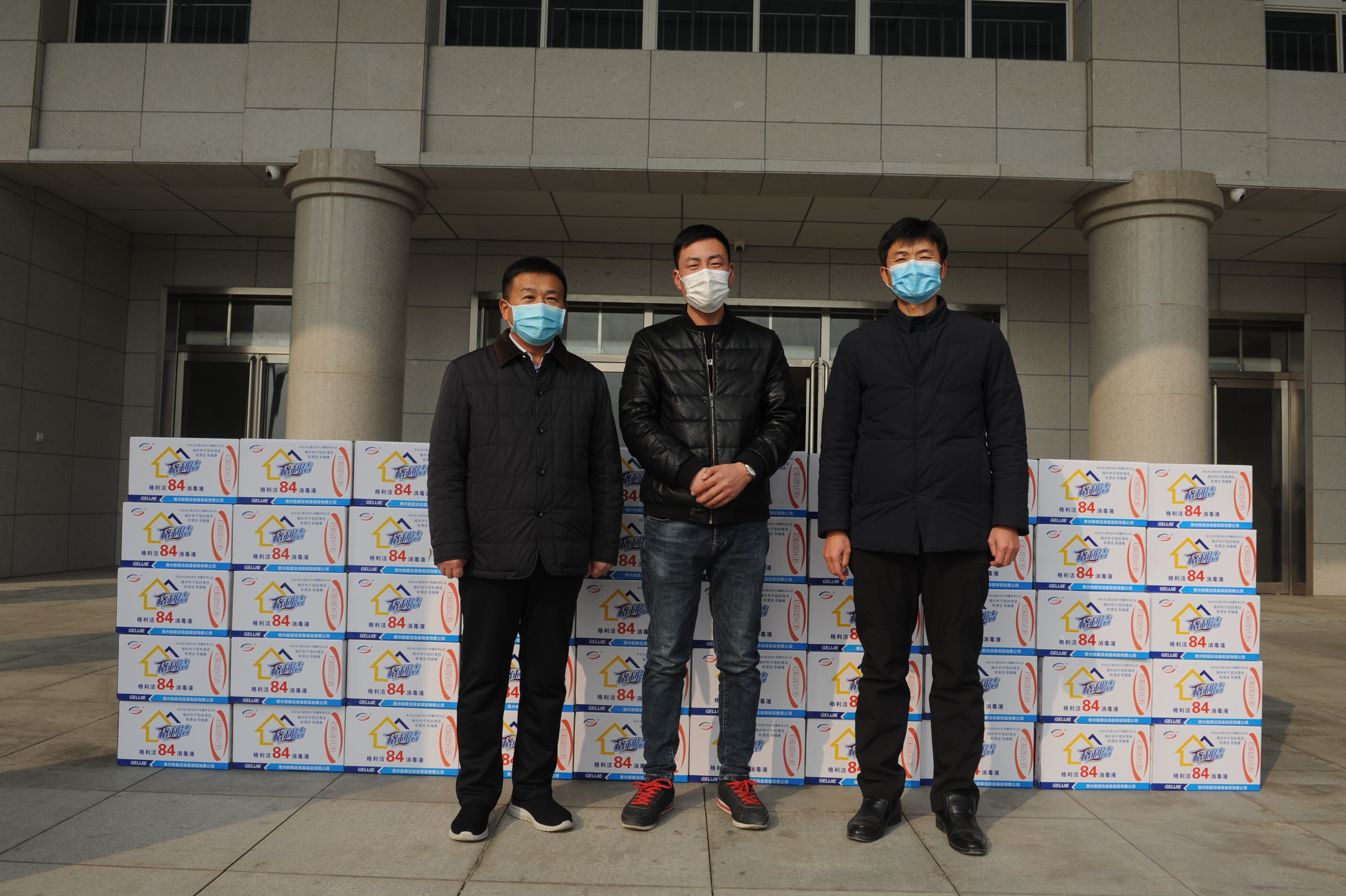 “這些消毒液是排了好幾天的隊才從生產(chǎn)廠家購置來的,買到后我們一分鐘也不敢耽擱,趕緊就送過來了?!敝芸谑腥屎退帢I(yè)總經(jīng)理賈國新說,“真的希望能為黨委政府分點憂,為人民獻(xiàn)一點愛心。”