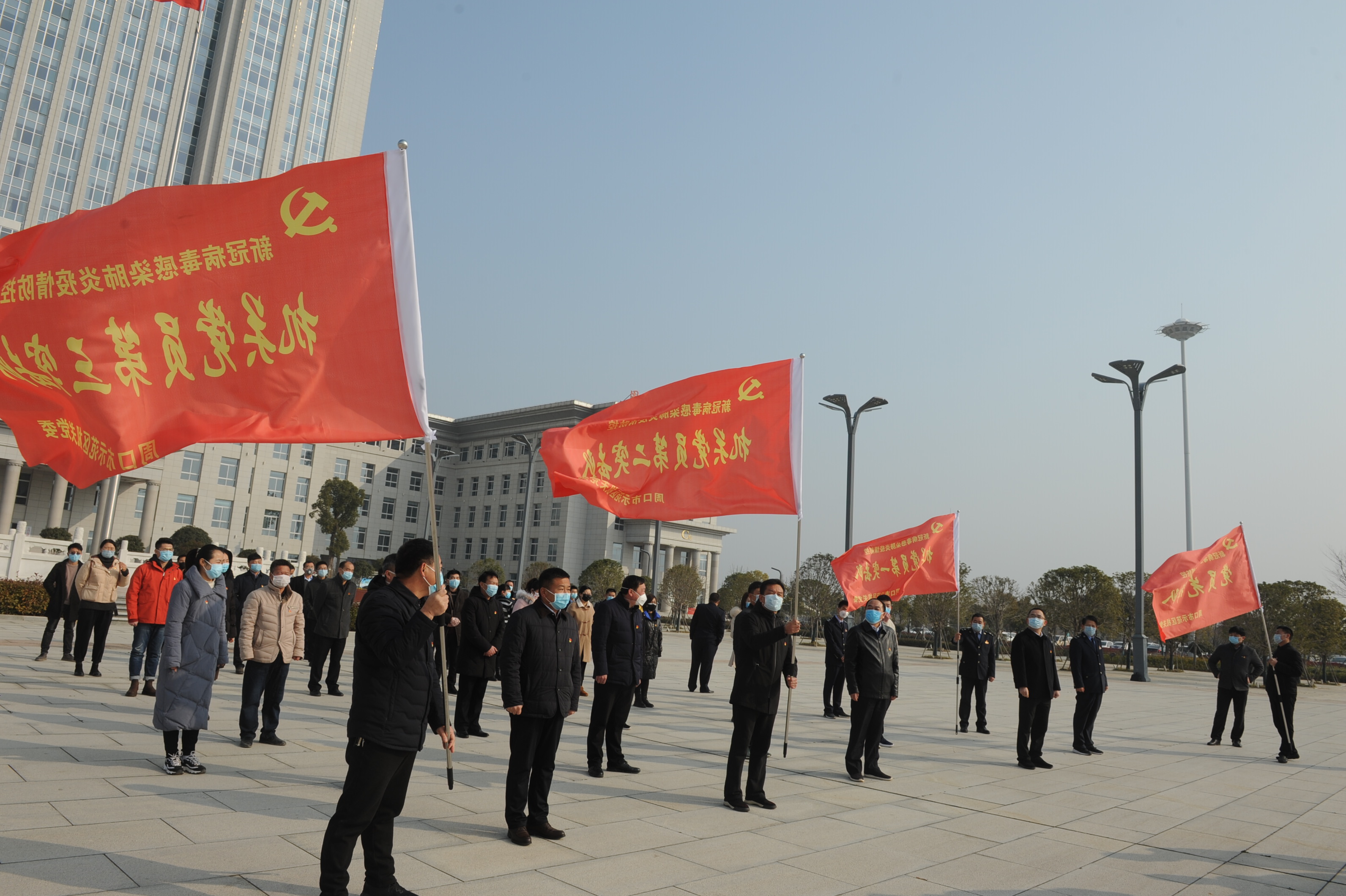 2月3日上午,在國(guó)旗下、黨旗前,示范區(qū)廣大黨員干部面對(duì)黨旗重溫入黨誓詞,充分展示了廣大黨員干部主動(dòng)請(qǐng)戰(zhàn)到戰(zhàn)“疫”一線的決心和信心。隨后,區(qū)機(jī)關(guān)黨委相關(guān)領(lǐng)導(dǎo)向黨員先鋒隊(duì)和3個(gè)黨員突擊隊(duì)授予隊(duì)旗,希望他們堅(jiān)守在一線、圓滿完成疫情防控的各項(xiàng)任務(wù)。