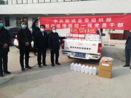 為認(rèn)真貫徹落實(shí)習(xí)近平總書(shū)記重要指示精神和中央、省委、市委組織部門(mén)決策部署,充分發(fā)揮專(zhuān)項(xiàng)黨費(fèi)在疫情防控工作中傳遞組織溫暖、解決實(shí)際困難、凝聚黨心民心的重要作用,2月5日,鄲城縣委常委、組織部長(zhǎng)侯磊帶領(lǐng)各位副部長(zhǎng)分頭行動(dòng),迅速將專(zhuān)項(xiàng)黨費(fèi)購(gòu)買(mǎi)的酒精、消毒液、牛奶、方便面等有關(guān)物資援贈(zèng)到一線基層黨組織,并與各鄉(xiāng)鎮(zhèn)(辦事處、 高新區(qū))黨(工)委負(fù)責(zé)人進(jìn)行了交接,切實(shí)將組織的關(guān)懷溫暖傳遞到戰(zhàn)斗在疫情防控第一線的基層黨組織和廣大黨員干部,全力幫助支持基層黨組織開(kāi)展疫情防控工作。