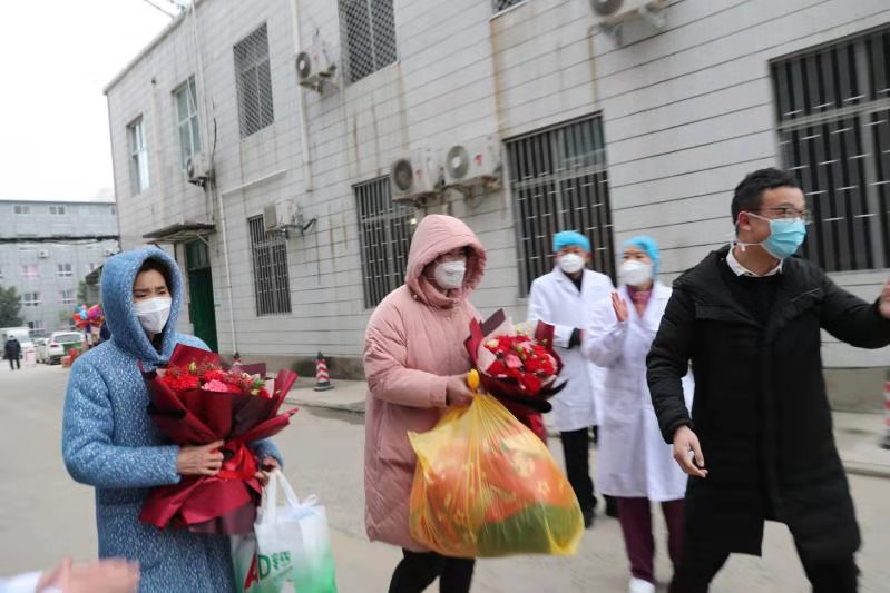 當(dāng)日下午3時,朱某某、陳某某在醫(yī)護人員的陪伴下從病房里走出,太康縣人民醫(yī)院院長聶方華帶領(lǐng)院領(lǐng)導(dǎo)班子與醫(yī)護人員一道給兩名出院的患者舉行了簡單而熱烈的祝賀儀式。“感謝偉大的祖國,感謝偉大的黨,感謝太康縣委、縣政府,感謝醫(yī)院的醫(yī)護人員!”患者陳某某出院時,“感謝”二字一直掛在嘴邊。為了表達謝意,朱某某、陳某某出院前專門委托家人給醫(yī)護人員送來了鮮花。