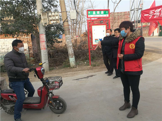 臘月三十那天,餃子剛剛包好,王愛(ài)月同志臨危受命,根據(jù)鎮(zhèn)黨委安排部署,果斷迅速組織布防嚴(yán)控,立即進(jìn)入疫情防控第一線。鄉(xiāng)鎮(zhèn)召集各村黨支部書(shū)記召開(kāi)會(huì)議,分析研判嚴(yán)峻形勢(shì),要求各村支部發(fā)揮基層組織“戰(zhàn)斗堡壘”作用,立即摸清情況,穩(wěn)定群眾情緒,增強(qiáng)群眾信心;鎮(zhèn)中心衛(wèi)生院給各村醫(yī)安排防疫工作。會(huì)后,村兩委班子第一時(shí)間成立了奉母鎮(zhèn)后邵村防控新冠肺炎疫情領(lǐng)導(dǎo)小組,王愛(ài)月?lián)胃苯M長(zhǎng),協(xié)助支部書(shū)記制定全村防控應(yīng)急處置方案,負(fù)責(zé)處理疫情持續(xù)期間各類防控工作,結(jié)合后邵村實(shí)際,從疫情摸排、防控物資采購(gòu)、應(yīng)急值守、各場(chǎng)所消毒、道路設(shè)卡等各方面全面做好準(zhǔn)備。全村組建6個(gè)排查組對(duì)全村居民逐戶排查,她親自帶隊(duì)逐戶排查所有外來(lái)人員,確保不漏一戶一人。之后,建立排查臺(tái)賬,及時(shí)準(zhǔn)確掌控疫情動(dòng)態(tài),為每位務(wù)工返鄉(xiāng)人員發(fā)放了注意事項(xiàng)告知書(shū)和宣傳單,對(duì)外出返鄉(xiāng)人員落實(shí)了包戶責(zé)任制。同時(shí)建立防控微信群,實(shí)時(shí)掌握他們的身體情況,解答他們的疑惑,全力做好心理疏導(dǎo)工作,切實(shí)解決鄉(xiāng)里鄉(xiāng)親的困難問(wèn)題。