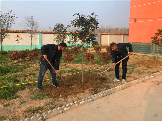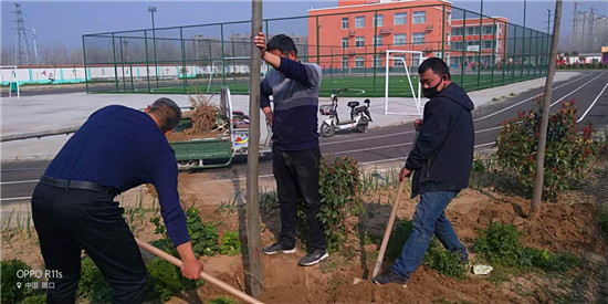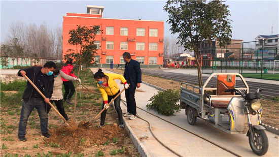 戰(zhàn)疫不忘植樹 蔣莊小學(xué)添新綠