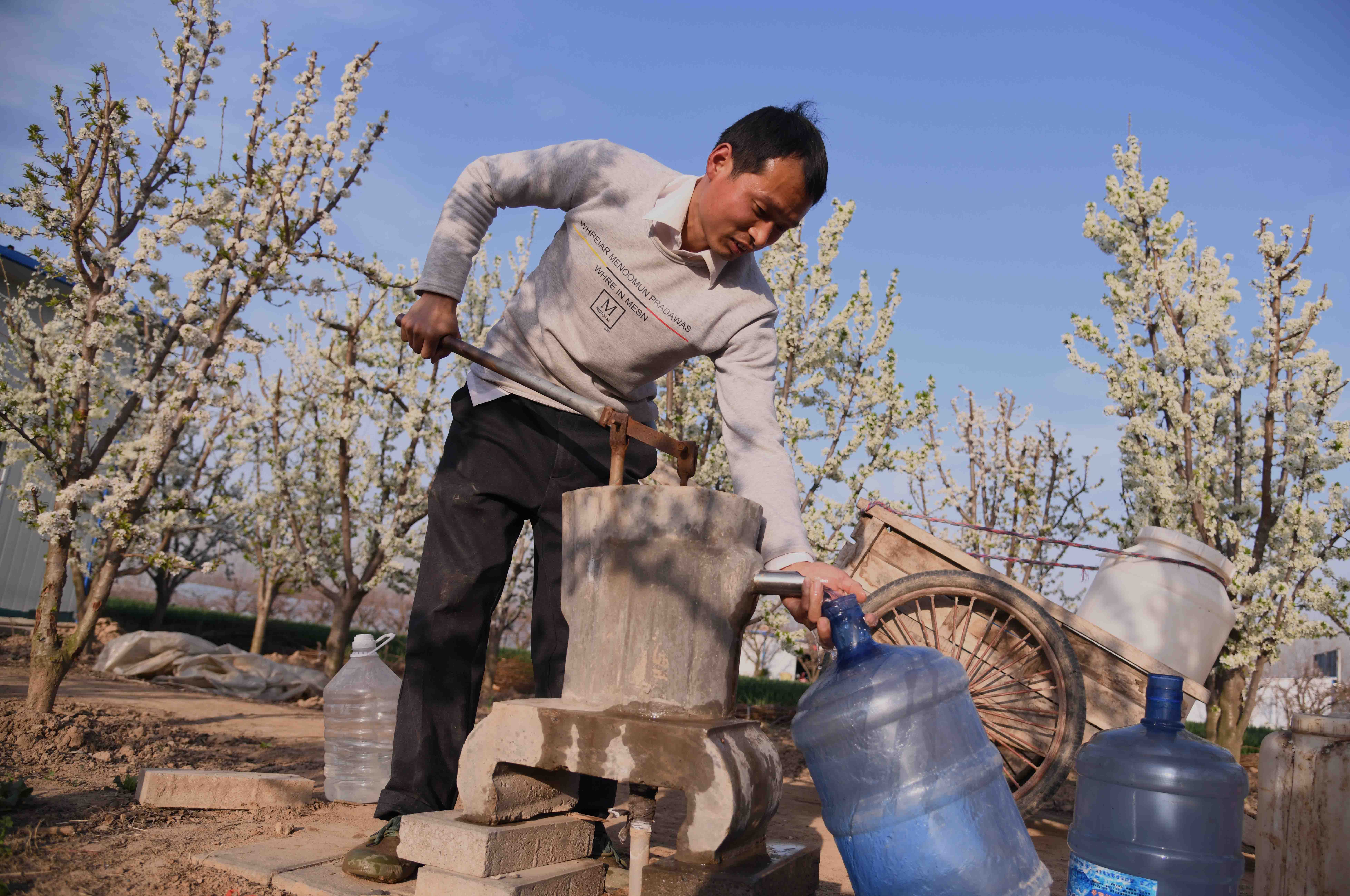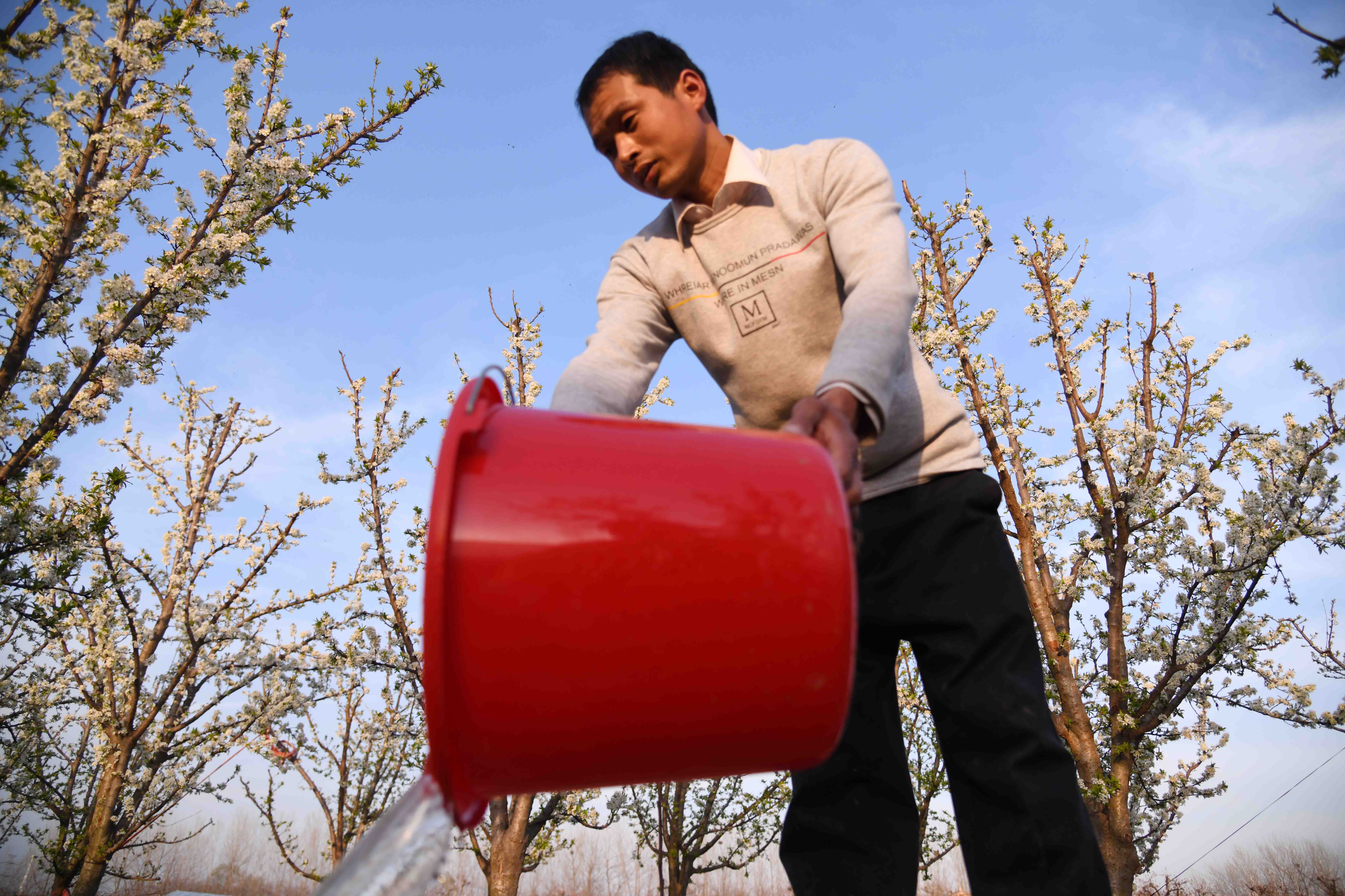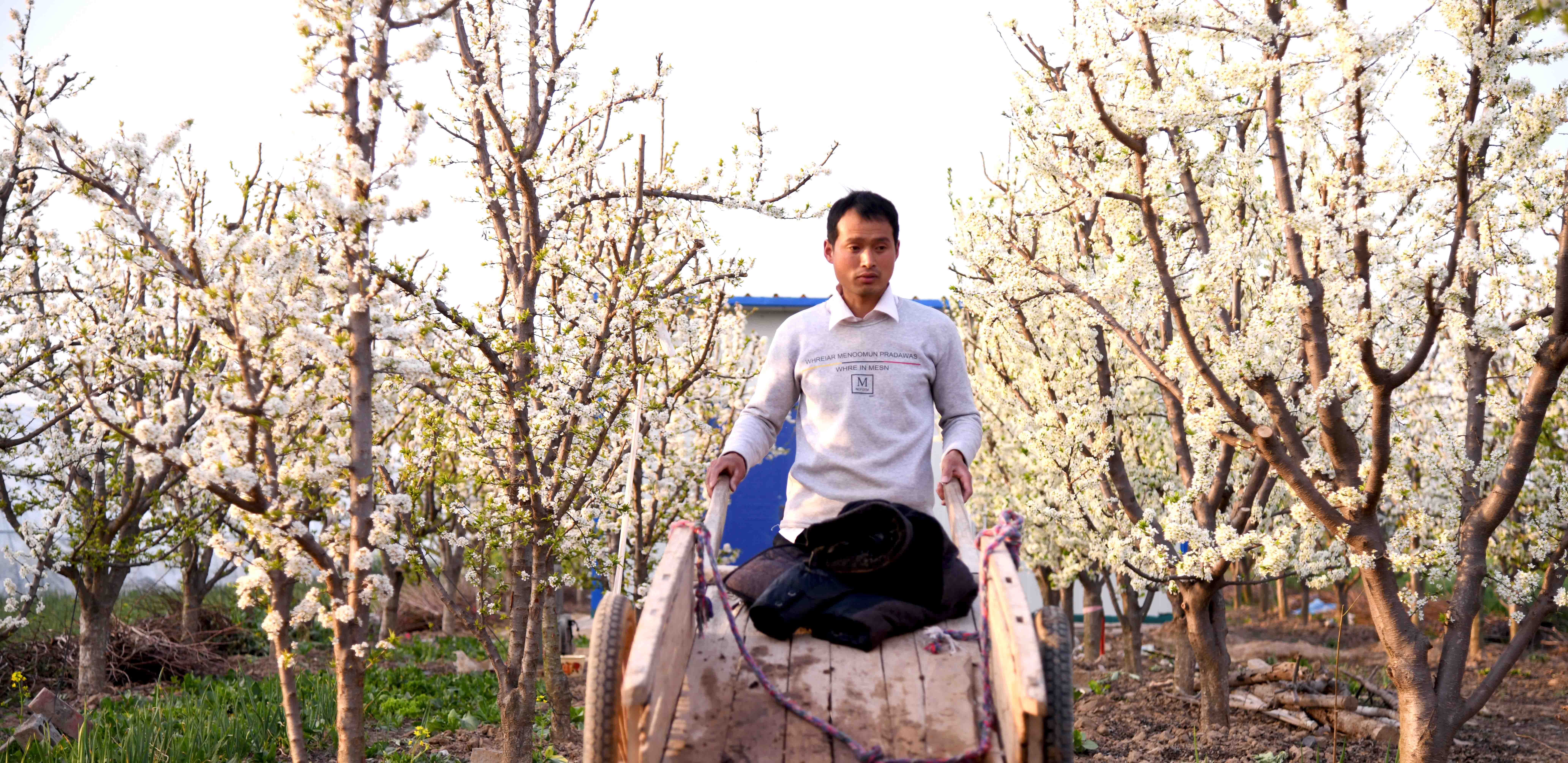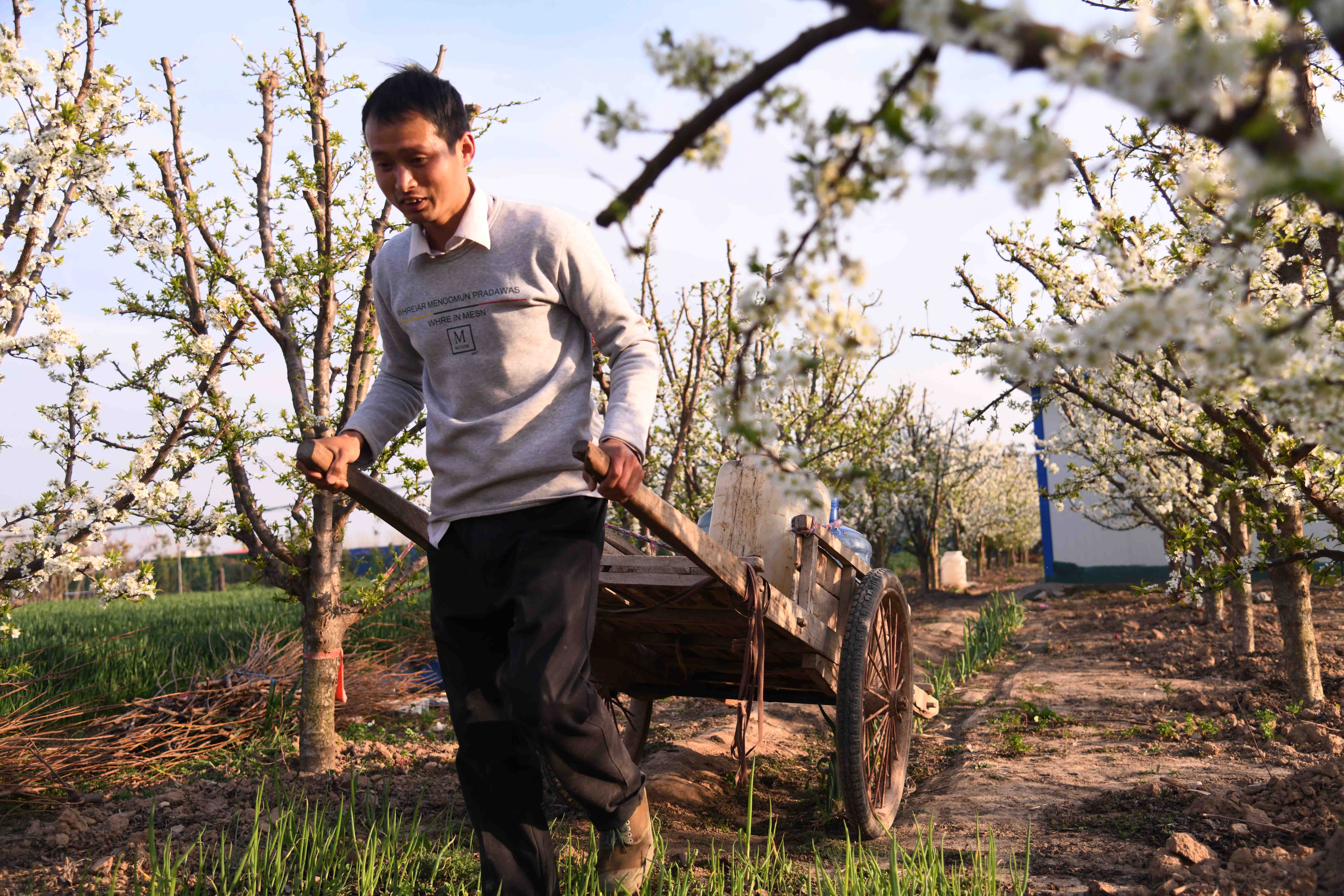 記者在一家果農(nóng)的果園里看到,果園在春陽下,李子花滿園濃放,滿樹花朵潔白如玉,芳香四溢,宛如置身人間仙境。果農(nóng)正忙著為果樹澆水,侍弄新栽的果苗。何莊村果園有三四百畝,種植有桃樹、蘋果樹、梨樹、李子樹、柿樹等,是附近有名的果樹種植村,成為村里的重要副業(yè),每年夏秋季節(jié),這里瓜果飄香,吸引很多城里人和附近村民前來購(gòu)買。