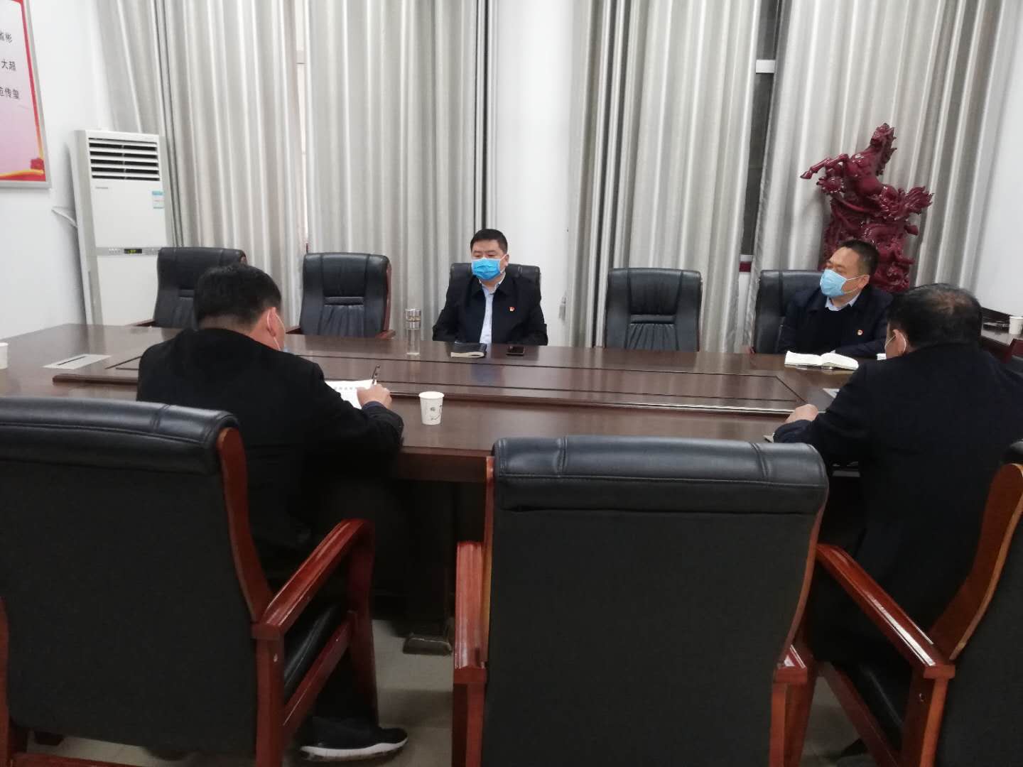 在隨后召開的座談會上,張國慶及農(nóng)業(yè)農(nóng)村局、畜牧中心、農(nóng)機(jī)服務(wù)中心主要負(fù)責(zé)同志匯報了當(dāng)前的工作。李剛要求,一是要注重“強(qiáng)縣與富民統(tǒng)一起來,增強(qiáng)縣域經(jīng)濟(jì)綜合實力”,結(jié)合縣情發(fā)揮資源優(yōu)勢,充分利用農(nóng)業(yè)產(chǎn)業(yè)招商引資優(yōu)惠政策,發(fā)展壯大本地特色產(chǎn)業(yè),加快培育強(qiáng)縣富民優(yōu)勢農(nóng)業(yè)產(chǎn)業(yè),推動各鄉(xiāng)鎮(zhèn)實現(xiàn)農(nóng)村產(chǎn)業(yè)振興;二是要注重“改革與發(fā)展結(jié)合起來,帶動提升農(nóng)村發(fā)展水平”,充分利用農(nóng)村集體經(jīng)濟(jì)制度等改革,合理加快市場化引入,培育壯大農(nóng)村集體和市場經(jīng)濟(jì),把“引進(jìn)來”和“走出去”緊密結(jié)合,提高縣域發(fā)展,確保“中國人的飯碗任何時候都要牢牢端在自己的手上”;三是要注重“城鎮(zhèn)與鄉(xiāng)村貫通起來,形成城鄉(xiāng)融合發(fā)展的良好局面”,統(tǒng)籌謀劃全局,以國土空間規(guī)劃為抓手,強(qiáng)化縣域產(chǎn)業(yè)的合理分布,因地制宜實現(xiàn)鄉(xiāng)鎮(zhèn)農(nóng)產(chǎn)品深加工的特色產(chǎn)業(yè)鏈條,實現(xiàn)一二三產(chǎn)業(yè)深度融合發(fā)展。