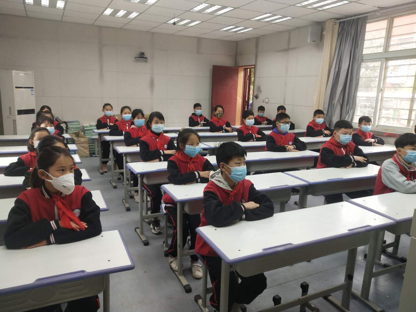 該校校長(zhǎng)邱林為全校4、5、6年級(jí)1千多名師生上復(fù)學(xué)第一課,重點(diǎn)講述疫情之中感動(dòng) 、疫情帶給我們的啟示。