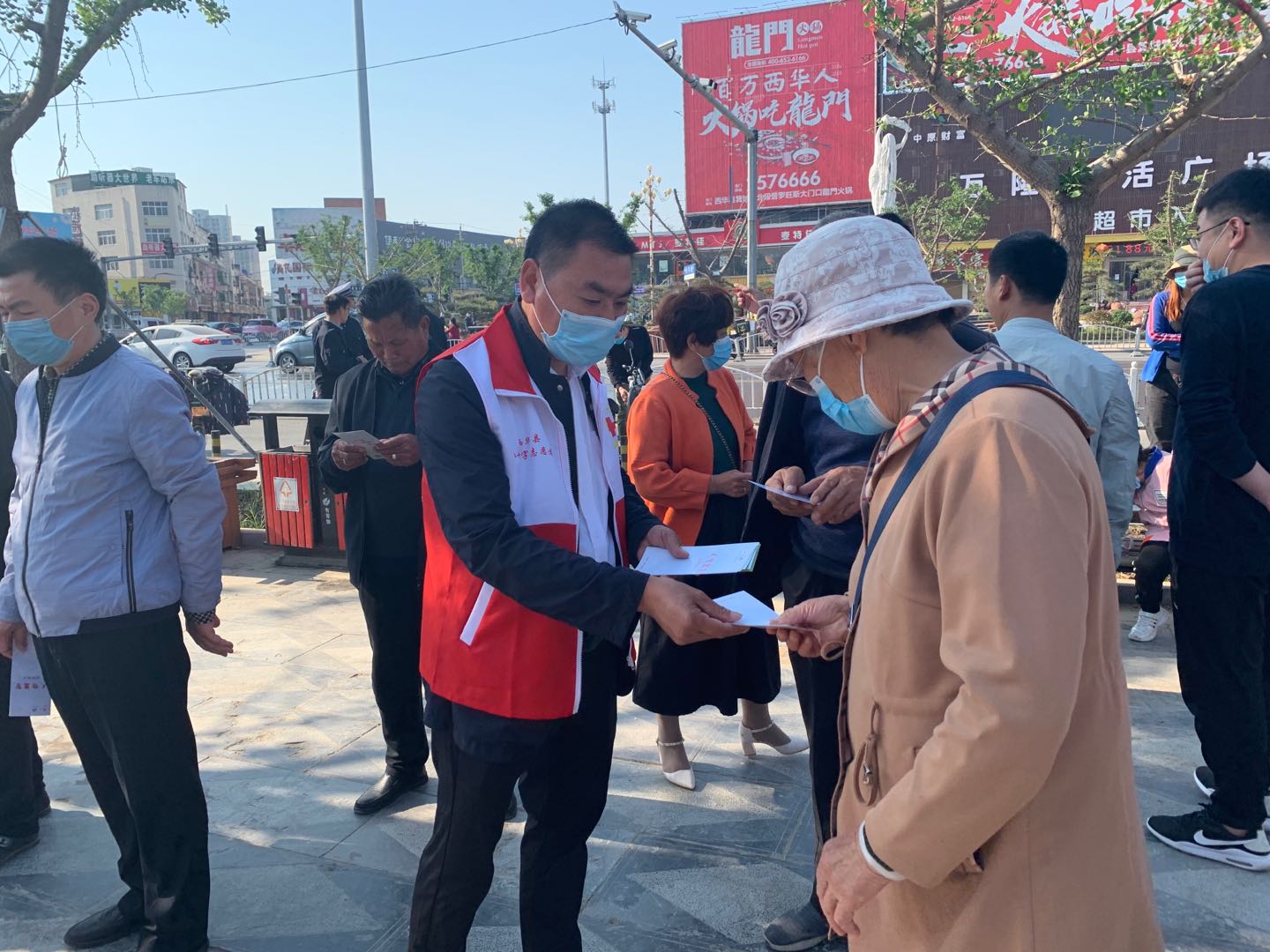 在該縣中心廣場,縣人民醫(yī)院、縣中醫(yī)院科室的骨干醫(yī)生搭起了義診臺,為過往市民量血壓,開展義診活動。同時,通過擺放宣傳展板和發(fā)放宣傳冊向過往市民宣傳常見病防護(hù)知識以及紅十字會的由來、發(fā)展過程、無償獻(xiàn)血、造血干細(xì)胞、預(yù)防新型冠狀病毒指南相關(guān)內(nèi)容。