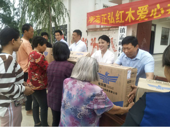 像李榮蘭一樣,當(dāng)日,孟嶺行政村的22戶建檔立卡貧困戶,均收到了河南正弘紅木有限公司董事長莊園女士送去愛心風(fēng)扇,個個高興得合不攏嘴。