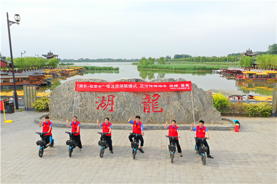 為進(jìn)一步健全生態(tài)環(huán)境行政執(zhí)法與檢察監(jiān)督銜接工作機(jī)制,加強(qiáng)檢察機(jī)關(guān)與河長(zhǎng)制辦公室及其成員單位的協(xié)作配合、監(jiān)督制約,長(zhǎng)效推動(dòng)提升淮陽(yáng)區(qū)河湖治理與管護(hù)水平,維護(hù)優(yōu)化河湖生態(tài)功能。近日,在淮陽(yáng)區(qū)龍湖東碼頭舉行了“湖長(zhǎng)+檢察長(zhǎng)”依法治湖新模式,法治保障湖凈、岸綠、景美宣傳活動(dòng)。該區(qū)檢察院黨組書(shū)記、檢察長(zhǎng)嚴(yán)新愛(ài)、區(qū)文改委黨委書(shū)記、主任、湖長(zhǎng)李俊志出席了活動(dòng),區(qū)河長(zhǎng)辦公室主任、水利局長(zhǎng)張麗、區(qū)龍湖管理處主任韓長(zhǎng)峰、區(qū)檢察院副檢察長(zhǎng)曹長(zhǎng)亮、區(qū)自然資源局副局長(zhǎng)蔡慶民相關(guān)負(fù)責(zé)同志參加。