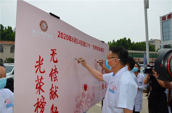 6月14日是第17個(gè)“世界獻(xiàn)血者日”,今年的主題是“安全血液、拯救生命”。為號(hào)召更多的人加入到無償獻(xiàn)血的隊(duì)伍,6月11日上午,市中醫(yī)院開展“第17個(gè)世界獻(xiàn)血日”無償獻(xiàn)血活動(dòng)。市政協(xié)副主席、市中醫(yī)院院長程維明,醫(yī)院黨委書記劉廣明,副院長魯恒心、 史衛(wèi)東,工會(huì)主席孫俊,市中心血站站長王峰、副站長申飛等領(lǐng)導(dǎo)及來自醫(yī)療、護(hù)理、門診、行政后勤人員300余人參加活動(dòng)。