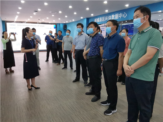 當(dāng)日上午9時,5個縣市的負(fù)責(zé)同志來到鄲城之后現(xiàn)場組成參觀團(tuán),進(jìn)入鄲城縣政府投資3500萬元興建的全民健康信息化服務(wù)中心,并參觀了第二醫(yī)療健康服務(wù)集團(tuán)(鄲城中醫(yī)院)的醫(yī)共體運營管理中心、醫(yī)保監(jiān)管中心和財務(wù)監(jiān)管中心“三大運營管理中心”。
