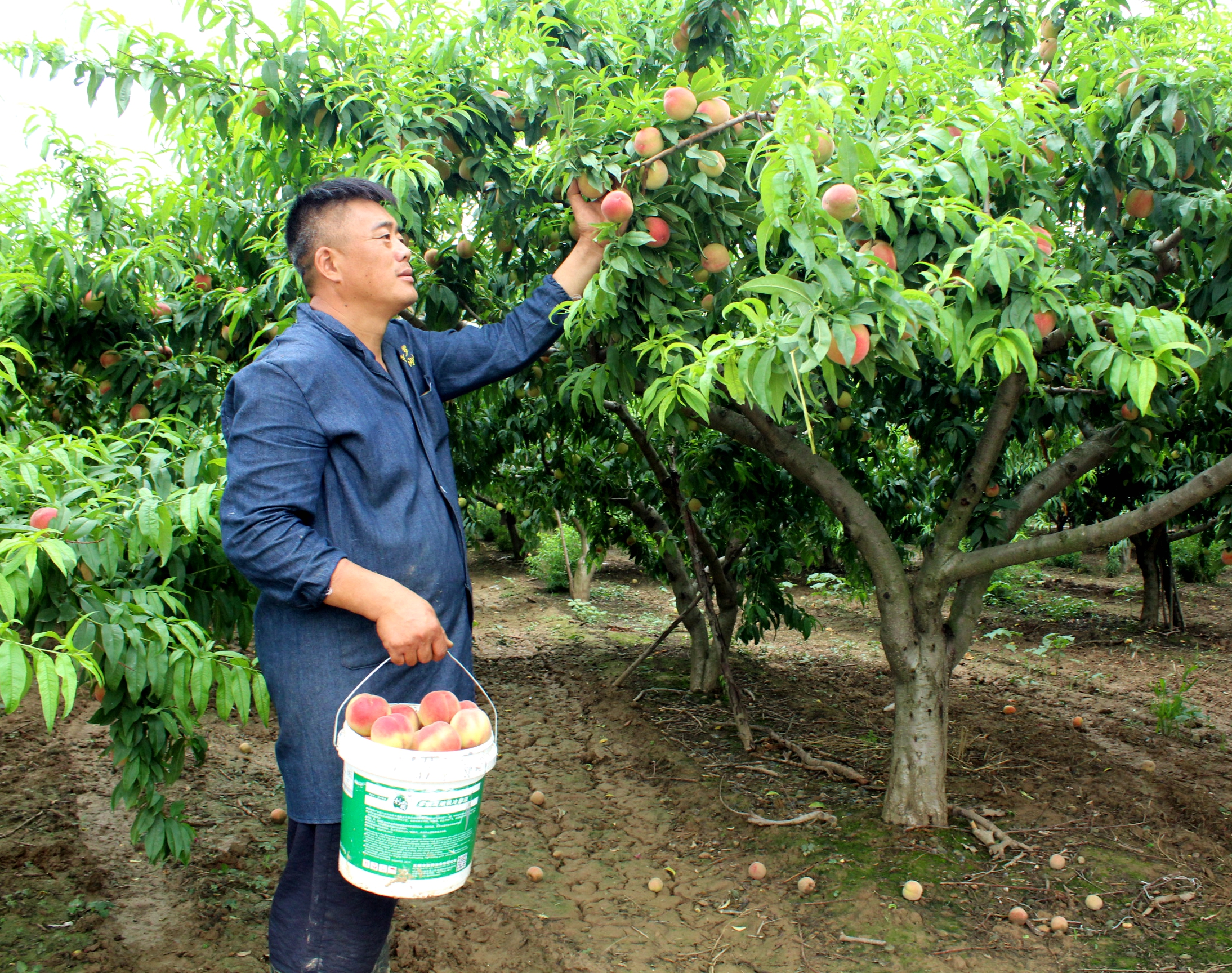 潁河灣生態(tài)采摘園負(fù)責(zé)人叫和合盛,今年44歲,高中畢業(yè)后外出打工,2013年返鄉(xiāng)創(chuàng)業(yè),投資30余萬(wàn)元,流轉(zhuǎn)土地140畝種植水蜜桃,創(chuàng)辦西華縣合盛種植專業(yè)合作社。目前,該合作社種植水蜜桃面積2000余畝,發(fā)展社員106戶,帶動(dòng)建檔立卡貧困戶112戶,其中產(chǎn)業(yè)扶貧100戶,金融扶貧12戶,被上級(jí)有關(guān)部門命名為市級(jí)扶貧示范基地。由于合作社種植的桃子質(zhì)量好、價(jià)格合理、銷售火爆,和合盛成了遠(yuǎn)近聞名的致富能手,被人親切地稱為“桃子哥”。