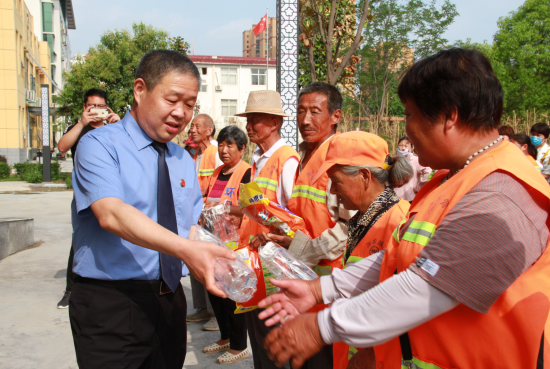 6月18日下午,西華縣檢察院黨組書記、檢察長鄭清朝帶領(lǐng)該院志愿者服務(wù)隊(duì)開展慰問環(huán)衛(wèi)工人志愿者活動(dòng),為775名環(huán)衛(wèi)工人送去毛巾、洗衣粉、香皂、水杯、礦泉水等價(jià)值近3萬元的慰問品,以此表達(dá)對(duì)普通勞動(dòng)者最真摯的關(guān)懷。