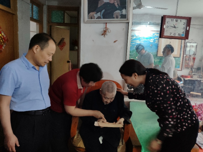 趙百廉老人家現(xiàn)年94歲,系黃埔軍校二十三期學(xué)員,同時是一名抗日老兵。張梅枝一行走進趙百廉家中,對老人噓寒問暖,詳細(xì)了解老人的起居飲食、身體狀況,并為老人送上了慰問品、慰問金,感謝老人在抗日戰(zhàn)爭中作出的貢獻。同時向他送上黨和政府的關(guān)懷和節(jié)日的祝福,祝愿他身體健康,晚年幸福。