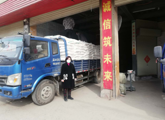 董君蓮還組織公司員工積極配合政府的工作安排,除了每天對(duì)廠區(qū)進(jìn)行消毒外,在工廠門口設(shè)立疫情防控卡點(diǎn)。她一邊為前來采購面粉的老百姓做好信息登記、測量體溫、酒精消毒并檢查是否佩戴口罩,一邊給老百姓宣傳疫情防控知識(shí),幫老百姓抬面粉送車上,她講最多的一句話就是“要相信黨委政府,在共產(chǎn)黨的領(lǐng)導(dǎo)下,在咱老百姓的共同努力下,一定能早日勝利打贏抗擊疫情阻擊戰(zhàn)!”