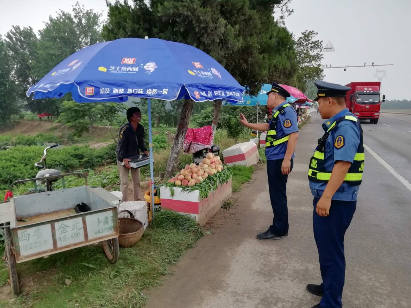 隨著瓜果等農(nóng)產(chǎn)品陸續(xù)上市,龍源路附近很多村民直接把瓜果堆放在公路邊上占道經(jīng)營,給道路交通帶來嚴重的安全隱患。通過勸導、宣傳教育,提高了沿線經(jīng)營戶對違章占用公路擺攤設點危害性的認識,自覺將攤點撤離公路至安全地帶,確保了沿線公路的安全暢通。