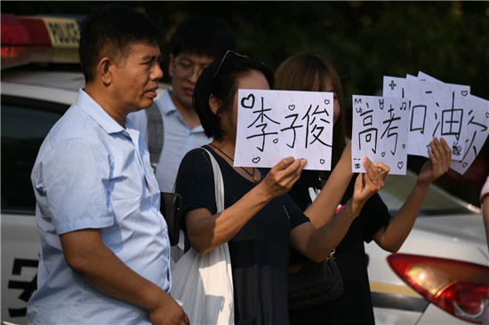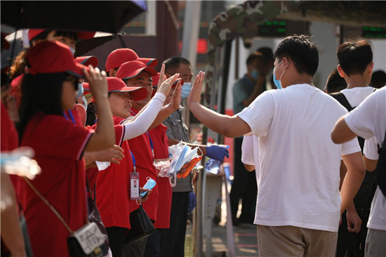 祝愿學(xué)子們考出好成績,今夏實(shí)現(xiàn)金榜題名,是全社會(huì)共同的心聲。7月7日上午8點(diǎn)多,2020年高考開啟神圣時(shí)刻,和往年不同的是,因疫情影響,學(xué)子們帶著口罩入場(chǎng),作為外援的家長們,更是悉數(shù)趕到考場(chǎng)外,為孩子們加油!而辛勤一年的老師們,更顧不上歇一會(huì)兒,也趕到考場(chǎng)外,為學(xué)生擊掌打氣,構(gòu)成周口考場(chǎng)外動(dòng)人的圖景。圖為市一高考場(chǎng)外的家長們舉著加油的牌子,為孩子助威!一高的老師穿上小紅馬甲,當(dāng)志愿者,和進(jìn)場(chǎng)的學(xué)生擊掌助威!