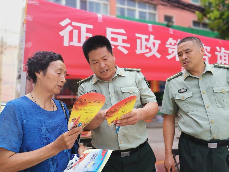 高考期間,淮陽(yáng)區(qū)人武部在轄區(qū)6個(gè)考場(chǎng)所在學(xué)校門(mén)口設(shè)立征兵宣傳站,向考生和家長(zhǎng)進(jìn)行見(jiàn)縫插針式的征兵宣傳。宣傳現(xiàn)場(chǎng),“參軍報(bào)國(guó)盡義務(wù),熱血青年競(jìng)風(fēng)采”“當(dāng)兵最光榮、軍人最美麗”等宣傳標(biāo)語(yǔ)格外引人注目,內(nèi)容豐富的征兵宣傳展板一字排開(kāi),《參軍入伍明白卡》《大學(xué)新生應(yīng)征入伍宣傳單》等征兵宣傳資料擺放在咨詢臺(tái)上一目了然,吸引了眾多的考生和家長(zhǎng)駐足觀看,圍著咨詢臺(tái)詢問(wèn)有關(guān)征兵事宜。