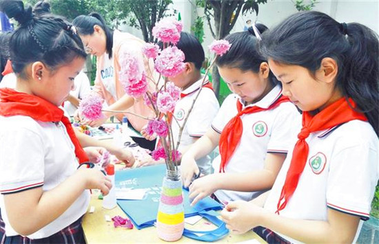 放暑假了,許多中小學(xué)生根據(jù)自己的愛(ài)好,報(bào)名參加了足球、美術(shù)、舞蹈等興趣班。這些興趣班使孩子們的假期生活變得豐富多彩,也讓他們更充實(shí)、更自信、更快樂(lè)。圖為商水縣新城學(xué)校的小學(xué)生假期里學(xué)習(xí)手工制作。