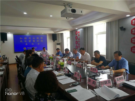 7月28日上午,商水縣加強(qiáng)司法保障、優(yōu)化營(yíng)商環(huán)境座談會(huì)在縣檢察院會(huì)議室舉行??h政協(xié)副主席、工商聯(lián)主席彭發(fā)光,縣檢察院黨組書記、檢察長(zhǎng)顧濤,縣公安局政委程寶峰,縣法院副院長(zhǎng)張華衛(wèi)、縣工商聯(lián)副主席兼秘書長(zhǎng)王志成等領(lǐng)導(dǎo)及全縣近20家重點(diǎn)民營(yíng)企業(yè)負(fù)責(zé)人參加了座談會(huì)。