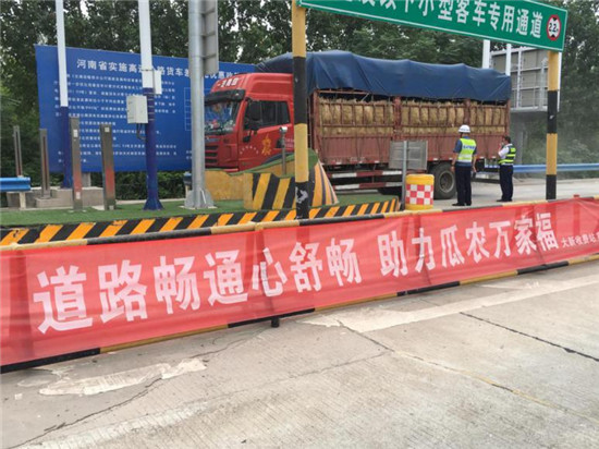 眼下正是瓜果集中上市的季節(jié),為幫助農(nóng)民銷(xiāo)售富有地方品牌特色的優(yōu)質(zhì)西瓜,促進(jìn)當(dāng)?shù)匚鞴辖?jīng)濟(jì)的發(fā)展,扶溝縣大新收費(fèi)站全員出動(dòng)保暢通,為全國(guó)各地拉瓜商販提供便捷服務(wù),為當(dāng)?shù)爻隹诮?jīng)濟(jì)的發(fā)展貢獻(xiàn)一份力量。