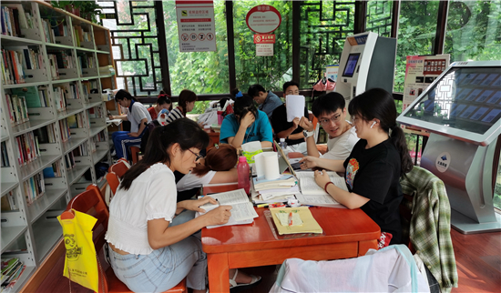 自進(jìn)入暑假以來(lái),市圖書(shū)館接待人數(shù)居高不下,其中學(xué)生居多。不少學(xué)生來(lái)此學(xué)習(xí)、寫(xiě)暑假作業(yè),他們感到圖書(shū)館環(huán)境靜謐,有學(xué)習(xí)氛圍。在市區(qū)的各個(gè)智慧圖書(shū)館內(nèi)有時(shí)還會(huì)出現(xiàn)了“一座難求”的現(xiàn)象。但大家都自覺(jué)遵守圖書(shū)館的紀(jì)律,沒(méi)有一絲噪音。