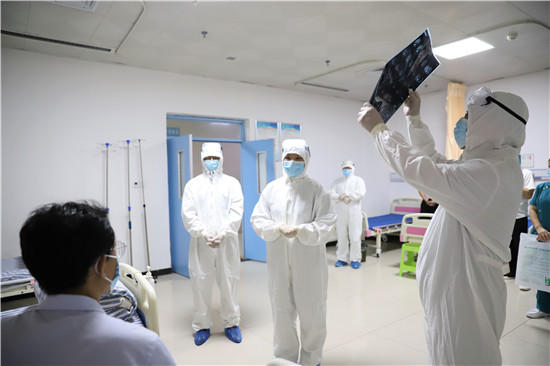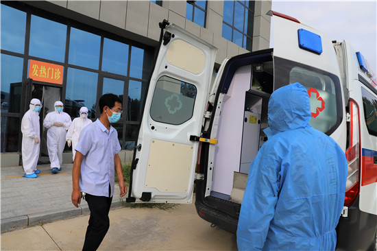 演練中,一名中年男子駕車到港區(qū)醫(yī)院就診,患者自述一周來在外地居住,無發(fā)熱癥狀,近一天來有氣促,活動后胸悶、氣促加重,偶有咳嗽。經(jīng)急診科醫(yī)生多次詳細詢問流行病學(xué)史,發(fā)現(xiàn)患者有隱瞞病史嫌疑(一周前同室居住工友,23日已確診為新冠患者),確定該病員為可疑新冠病毒肺炎患者。立即電話通知科主任及醫(yī)療救治專家組成員會診,根據(jù)患者主訴和臨床表現(xiàn),專家組分析高度懷疑病人為可疑感染新冠病毒病員。立即轉(zhuǎn)運至隔離留觀室,并通知傳染病管理小組將疫情上報至市疾病預(yù)防控制中心,并協(xié)助對該病員進行流行病學(xué)調(diào)查、轉(zhuǎn)運及指導(dǎo)消毒、滅菌等工作。經(jīng)市級專家會診后,符合疑似病例,按照區(qū)防控指揮部規(guī)定,采用負(fù)壓轉(zhuǎn)運車轉(zhuǎn)運定點醫(yī)院治療。