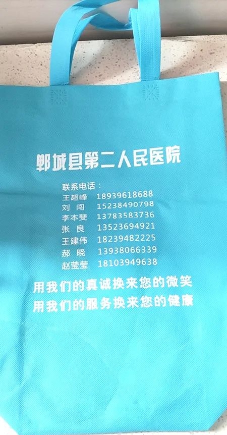 送患者手提袋,等于送上了放大號的醫(yī)生名片,方便了更多的留守在家的空巢老人,讓更多患者實現(xiàn)足不出戶就可以聯(lián)系到免費的“家庭醫(yī)生”,得到正確及時的用藥指導,從而有效降低了急病、突發(fā)病的發(fā)生,受到群眾好評。