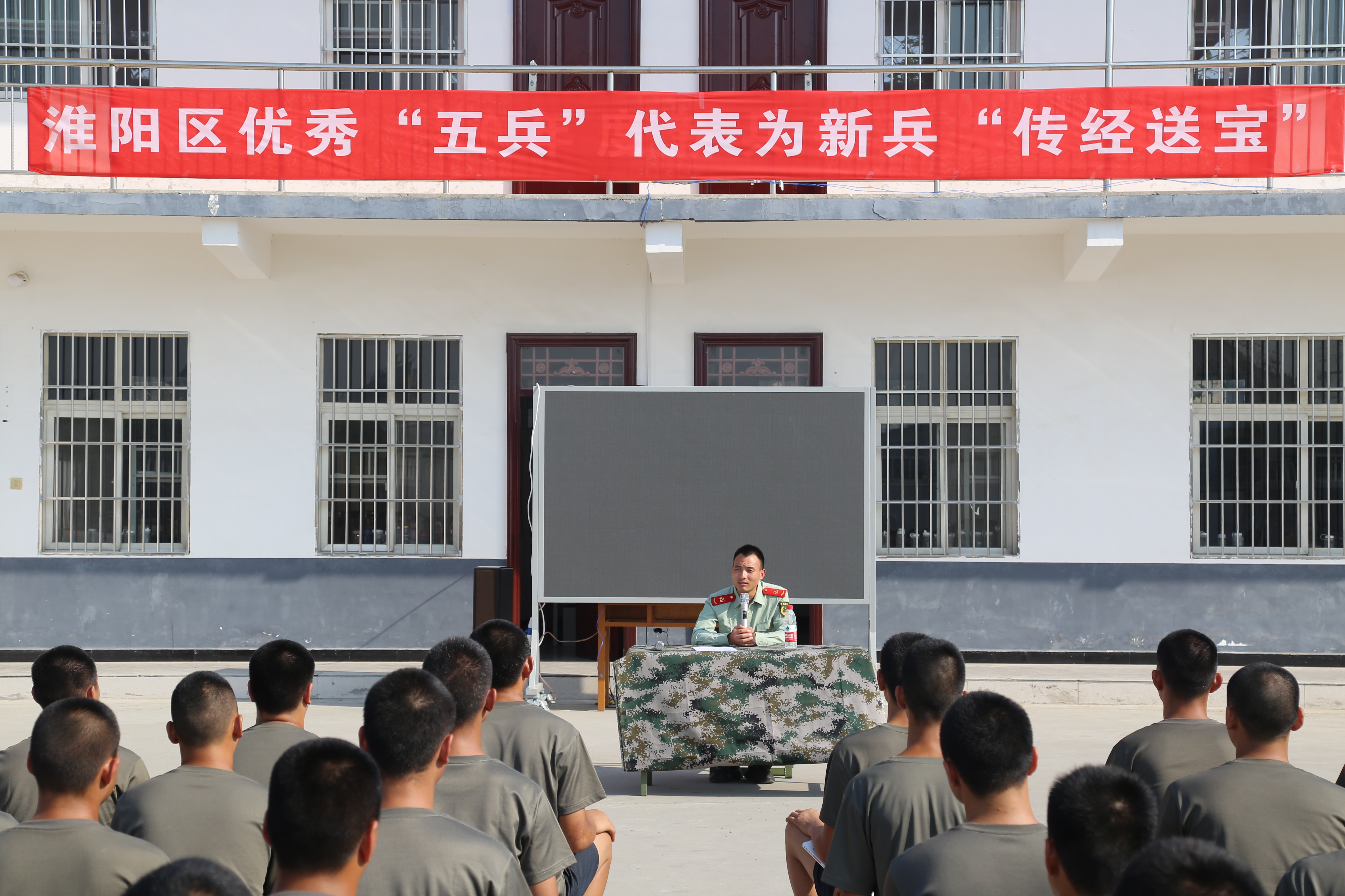 為了進一步激發(fā)新兵的工作訓(xùn)練熱情,堅定新戰(zhàn)士立足軍營,獻身國防的信念。9月8日,在年度新兵即將起運之際,淮陽區(qū)人武部組織優(yōu)秀“五兵”代表(參戰(zhàn)老兵、現(xiàn)役士兵、退役士兵)為新兵“傳經(jīng)送寶”活動,300余名新兵一起聆聽優(yōu)秀“五兵”代表精彩講課。