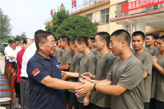 9月9日上午,在鹿邑縣預定新兵役前訓練集結之際,資深媒體人、北京周口企業(yè)商會秘書長、鹿邑縣雙擁愛心協(xié)會發(fā)起人張杰特別邀請享受正軍級職資待遇、終身享受國務院政府特殊津貼的鹿邑籍將軍畢啟亮,為鹿邑縣343名體檢、政考雙合格的“準新兵”上了一堂精彩的國防教育課,同時還向“準新兵”每人捐贈一套由周口商水籍原總政治部秘書長、軍事科學院副政治委員,第二炮兵副政治委員程寶山中將親手題寫“昨日是鄉(xiāng)親,今天成戰(zhàn)友——從軍報國志高遠,不忘家鄉(xiāng)故土情”的筆記本和鋼筆一支。鹿邑縣人武部部長范亞光,縣退役軍人事務管理局負責同志以及鹿邑縣雙擁愛心協(xié)會團體在現場聆聽國防教育課并參加捐贈活動。