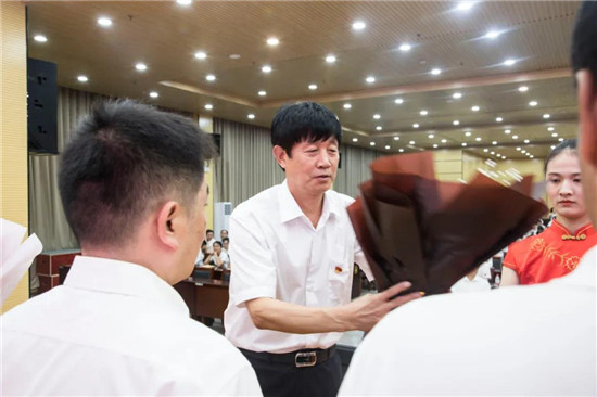 羅明黨宣讀鄲城縣教育體育局對鄲城二高趙耀校長的賀信。局黨組向鄲城二高取得優(yōu)異成績的莘莘學(xué)子表示熱烈祝賀,向辛勤耕耘的全體教職員工表示衷心感謝和親切慰問,并希望二高面對高考改革的滾滾大潮和人民群眾對優(yōu)質(zhì)教育的迫切需求,認真總結(jié)經(jīng)驗,堅定辦學(xué)信念,瞄準更高目標,進一步深化管理改革,優(yōu)化教學(xué)方法,豐厚教育內(nèi)涵,提升辦學(xué)水平,為推動鄲城教育高質(zhì)量發(fā)展再添重彩、再立新功!