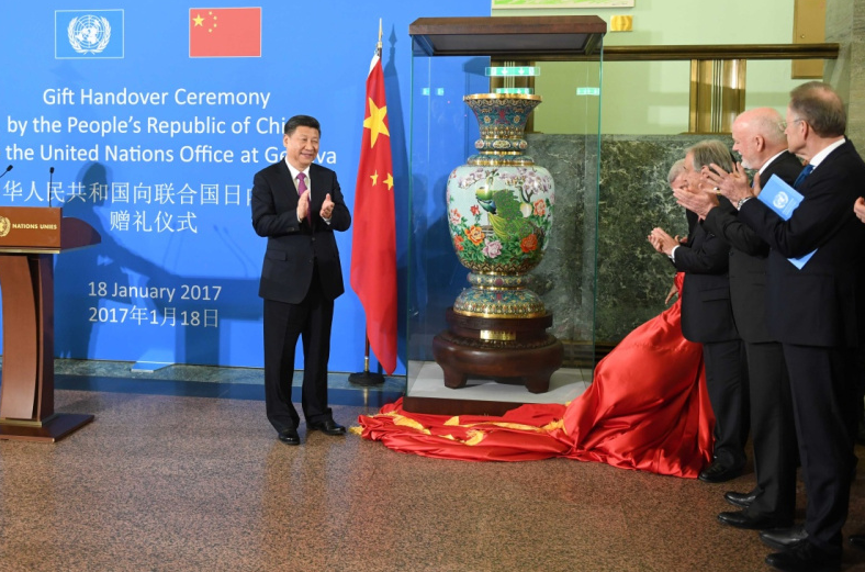2017年1月18日,習(xí)近平主席出席中國向聯(lián)合國日內(nèi)瓦總部贈(zèng)禮儀式。