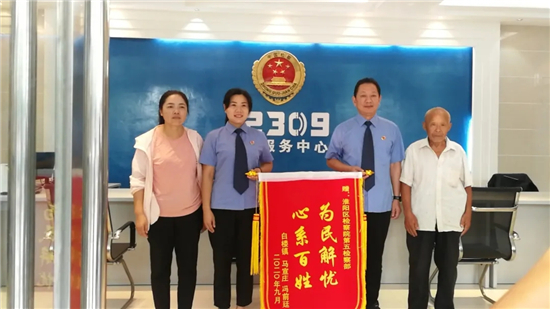 經(jīng)過勸說,雙方各自做出讓步,胡某某也很后悔自己動(dòng)手打人的行為,率先表達(dá)歉意,并主動(dòng)賠償2000元,馮某某對(duì)處理結(jié)果很滿意,雙方握手言和。事后,馮某某特地制作了一面“心系百姓、為民解憂”的錦旗,并送到淮陽人民區(qū)檢察院,以表達(dá)感謝之情。