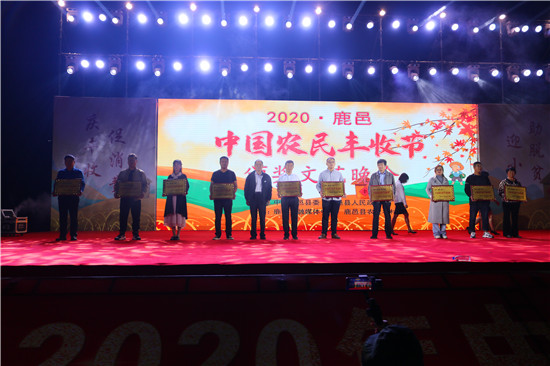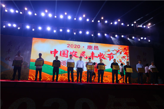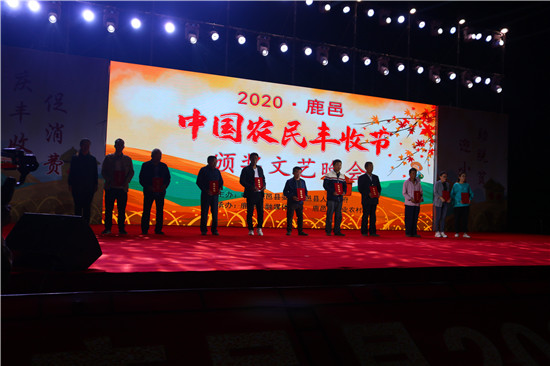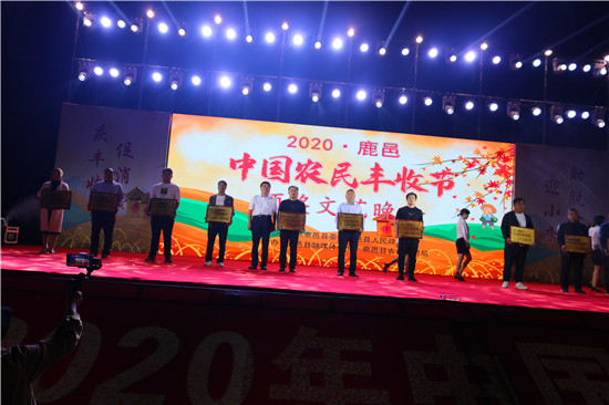 9月22日晚,由中共鹿邑縣委、鹿邑縣人民政府主辦的2020年鹿邑縣農(nóng)民豐收節(jié)文藝晚會(huì)在鹿邑縣文化中心廣場(chǎng)舉辦。晚會(huì)現(xiàn)場(chǎng)頒布了鹿邑縣“十佳家庭農(nóng)場(chǎng)”“十佳農(nóng)民合作社”“十佳特色農(nóng)產(chǎn)品品牌”“十佳返鄉(xiāng)創(chuàng)業(yè)脫貧致富帶頭人”“十佳脫貧致富先進(jìn)個(gè)人”五項(xiàng)獎(jiǎng)項(xiàng),40名新型農(nóng)民(農(nóng)場(chǎng)、合作社)代表和10個(gè)特色農(nóng)產(chǎn)品品牌獲殊榮,他們用行動(dòng)和產(chǎn)品充分展示了全縣現(xiàn)代農(nóng)業(yè)在過去一年中取得的輝煌成果。縣領(lǐng)導(dǎo)雷申、楊所超、侯自峰、王曉征、張國慶、肖西國等出席豐收節(jié)晚會(huì),并為獲獎(jiǎng)?wù)哳C發(fā)榮譽(yù)證書和獎(jiǎng)牌。