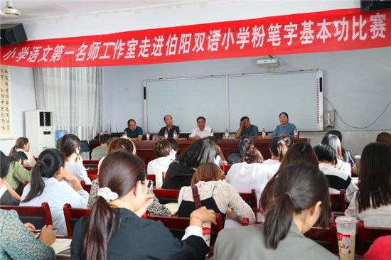 “漢字是中華民族的瑰寶,寫字教學(xué)是教師的一項基本功。此次縣硬筆書法協(xié)會應(yīng)邀來到伯陽學(xué)校,舉行書法進校園活動。省書法家協(xié)會會員、縣書法家協(xié)會副主席李曉杰,省美術(shù)家協(xié)會會員劉龍飛作為特邀嘉賓現(xiàn)場揮毫潑墨與師生現(xiàn)場交流,將活動引向高潮。”縣硬筆書法協(xié)會主席鮑雁冰說,結(jié)合自己多年對硬筆、毛筆習(xí)字的感悟,重點對教師進行“如何寫好字”的培訓(xùn),使教師知道練字既能提高寫字技能,又可修身養(yǎng)性,從而引發(fā)了教師練習(xí)書法的興趣。(③2)