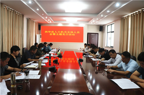 9月29日,西華縣人大常委會機關召開全體人員會議,安排部署黨風廉政建設工作,開展“厲行節(jié)約黨員帶頭、反對浪費從我做起”主題黨日活動。縣人大常委會主任周曉燕、副主任龐有敬出席會議。
