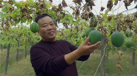 “瓜蔞,又叫吊瓜、野葫蘆,多年生藤本植物,塊根圓柱狀,富含淀粉。它渾身是寶,果子能入藥,也能加工食用?!苯?,在鄲城縣寧平鎮(zhèn)瓜簍種植基地,寧平鎮(zhèn)黨委書(shū)記徐汝敏看著滿眼豐收景象的瓜簍,臉上滿是笑容。