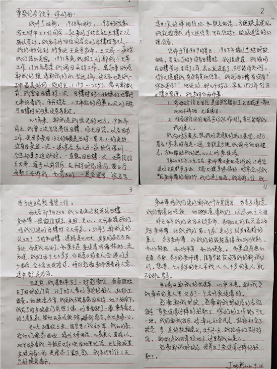 交談中,朱俊清得知寄信人丁阿姨是一名下鄉(xiāng)知青,收件人王先生是她插隊(duì)時的房東。從1968年至1971年底插隊(duì)時,丁阿姨與河南大學(xué)附屬中學(xué)的4位同學(xué)曾居住在王先生家,一住就是三年。三年間,王先生一家視她們?nèi)缬H人,在生活上為她們提供了很多力所能及的幫助。1971年,她調(diào)至鄲城縣小火車站工作;因工作需要,1974年她又調(diào)回老家開封。沒想到,這一別就是46年。