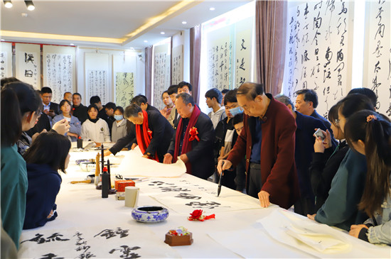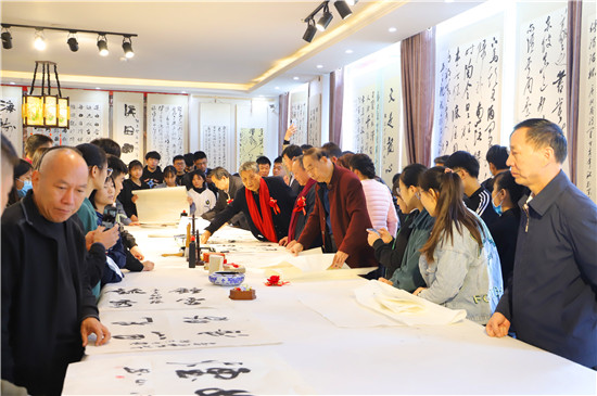 10月15日,重陽節(jié)。中國書法之鄉(xiāng)鄲城縣書協(xié)主席巴云山和資深書法家張樹銀、杜長青、崔傳明等人一道,在該縣八斗文化藝術(shù)中心舉行揮毫慶重陽的義寫活動(dòng)。許多老藝術(shù)家和年輕學(xué)生歡聚一堂,過了一個(gè)別樣的重陽節(jié)。
