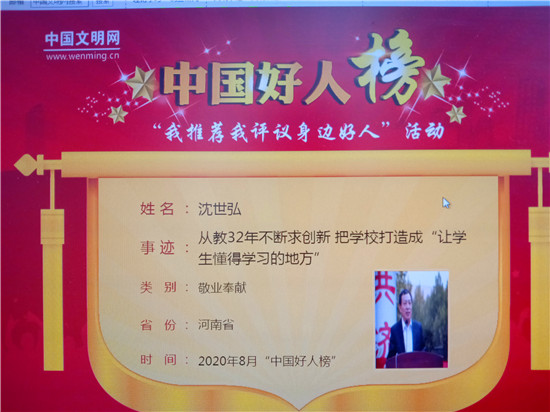 日前,中國文明網(wǎng)公布今年8月、9月中國好人評選結(jié)果:太康縣第一高級中學(xué)黨委書記、校長沈世弘從教32年不斷求創(chuàng)新,榮登8月敬業(yè)奉獻(xiàn)類“中國好人榜”;太康縣平安養(yǎng)殖專業(yè)合作社理事長王桂芳8年捐款捐物百余萬元幫助困難群眾,榮登9月“中國好人榜”。至此,太康縣中國好人上榜人數(shù)達(dá)66人,位居全國縣級市首位。