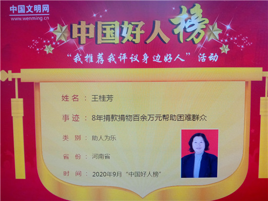 今年56歲的王桂芳,2005年10月告別打工生涯,東拼西湊了十萬多元,成立了品種豬養(yǎng)殖場。經(jīng)過苦心經(jīng)營,目前,她的養(yǎng)殖場已發(fā)展成為占地80畝,存欄母豬300頭,生豬3000頭,年出欄6000頭的大型養(yǎng)殖合作社。受打工經(jīng)濟(jì)的影響,廣大農(nóng)村的一些孤寡老人、空巢老人常年無人照料,日常生活也總是饑一頓飽一頓的,王桂芳看在眼里,疼在心里。2019年1月,王桂芳在太康縣城郊鄉(xiāng)王東月村創(chuàng)辦了一所占地20余畝的村級聯(lián)養(yǎng)院。“本村村民的事,她關(guān)心,外村非親非故的村民有困難,桂芳也會伸手相助。”王東月行政村黨支部書記王錦鄉(xiāng)說,“前天,俺鄉(xiāng)老墳洼村40多歲的徐華偉,妻子先天小兒麻痹癥,3個(gè)孩子中最大的12歲、最小的才7歲,因?yàn)橐疹櫰拮樱烊A偉無法外出務(wù)工,家里特別貧窮。王桂芳聽說后,立即給他送去2000塊錢。截至目前,王桂芳已累計(jì)為本村或臨鄉(xiāng)孤寡老人、貧困戶捐款捐物100多萬元。”