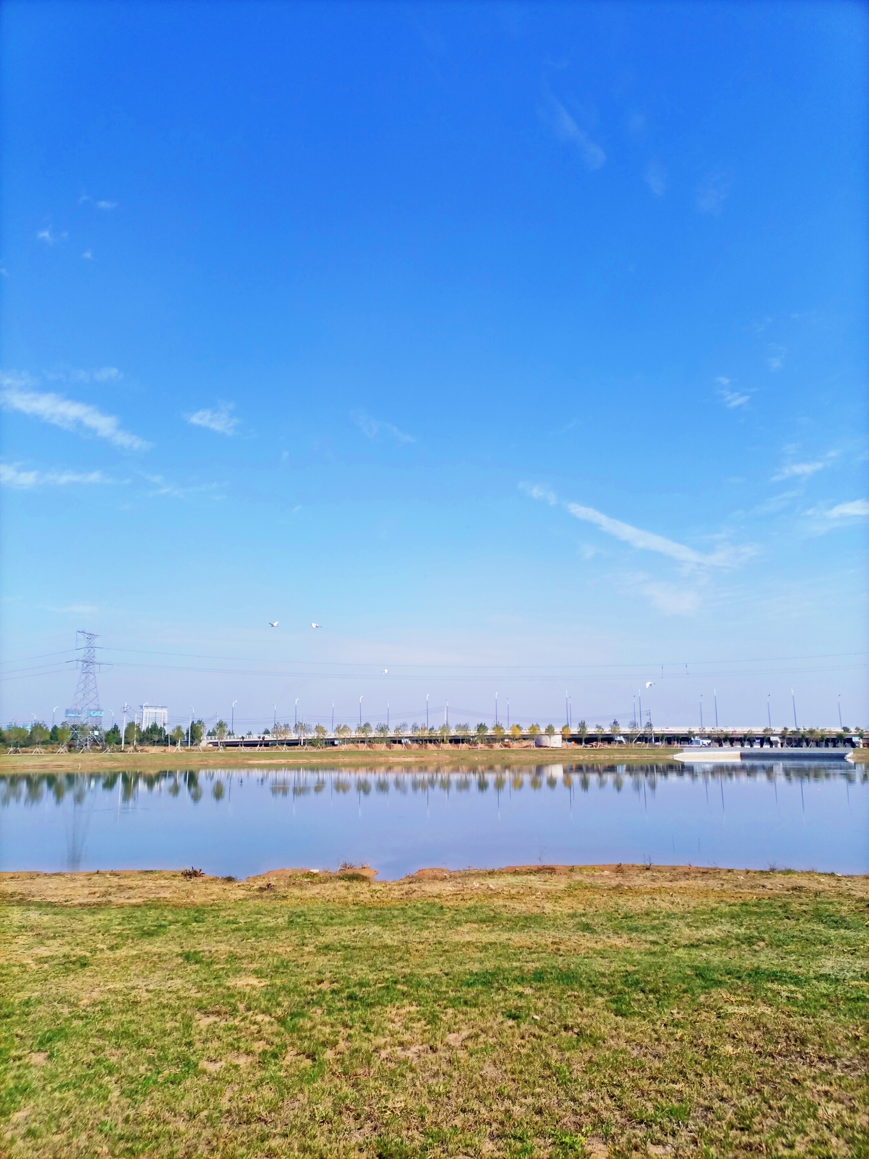 晚秋時節(jié),周口伏羲湖濕地公園風景宜人,舉目望去,波光瀲滟的伏羲湖水面上倒映著藍天、白云、飛鳥,“秋水共長天一色”的絕美畫卷讓人心醉。